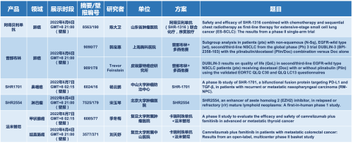 2022 ASCO年会另有5款A8国际医药上市前抗肿瘤创新药的相关研究被接收为壁报,包括SHR-1316、普那布林、法米替尼、SHR-1701和SHR2554,他们的单药或联合方案相关7项研究被接收为壁报,覆盖肺癌、鼻咽癌、淋巴瘤、甲状腺癌和结直肠癌等领域。