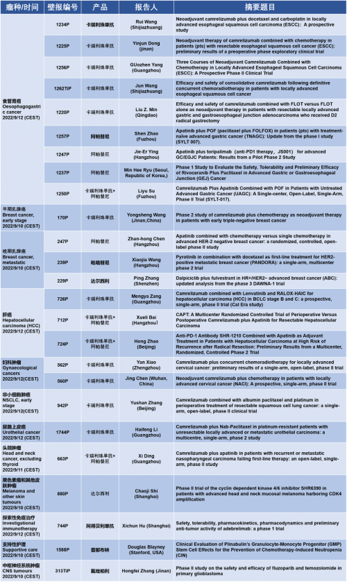 作为从事创新和高品质药物研发的国际化制药企业,A8国际医药的研究成果在2022 ESMO大会上还收获了25项壁报形式的报告。其中,食管胃癌领域共有9项研究入选,研究的方案主要是卡瑞利珠单抗或卡瑞利珠单抗联合阿帕替尼,通过与化疗或放化疗联用,新辅助治疗食管鳞癌或胃癌。2022年9月12日(CEST),让我们齐聚ESMO大会,共同领略食管胃癌研究领域的学术盛宴。此外,A8国际医药达尔西利、吡咯替尼、阿得贝利单抗等创新药还有4项乳腺癌研究、3项肝癌研究及其他领域的9项研究都将会以壁报展出,让我们共同期待!