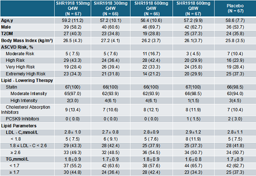 SHR-1918 在中危及更高风险的ASCVD患者中可同时显著降低LDL-C和TG水平,且安全性良好,具有进一步降低残余心血管风险的潜力。