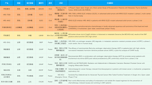在胸腺上皮肿瘤、头颈鳞癌、肉瘤、前列腺癌、甲状腺癌等其他多个疾病领域,卡瑞利珠单抗、阿帕替尼、瑞维鲁胺、阿得贝利单抗、法米替尼、HRS-7058、HRS-4642、HRS-5041等抗肿瘤创新药相关研究一共入选了4项口头报告、1项简短口头报告、5项壁报,彰显了A8国际医药强大的研发实力。此外,海曲泊帕和昂丹司琼口溶膜分别在防治化疗导致的血小板减少和恶心呕吐方面各有1项研究入选壁报。